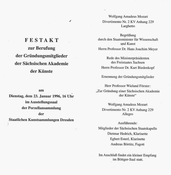 23. Januar 1996 - Berufung der Gründungsmitglieder der Sächsischen Akademie der Künste
