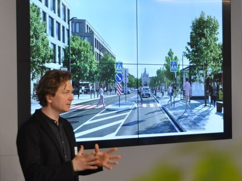 Bohdan Tscherkes stellte verschiedene Formen der bisherigen Zerstörungen durch Drohnen und Raketenbeschuss vor und zeigte, mit welchen Strategien die Ukrainer den Herausforderungen der Reparatur und des Wiederaufbaus begegnen. Von den fünf Schritten eines umfassenden Wiederaufbaus gehe es gegenwärtig zuerst um die Bestattung von Gefallenen und Opfern des Krieges. Die zweite Aufgabe bestehe in der Beseitigung zerstörter Bausubstanz. Drittens liegt der aktuelle Fokus auf der Instandsetzung beschädigter Gebäude und der Errichtung temporärer Wohnanlagen. Auch wenn sich internationale Büros mit ukrainischen Themen beschäftigen: Große Wiederaufbauentwürfe, Wettbewerbe und deren Realisierung liegen momentan noch in der Ferne.